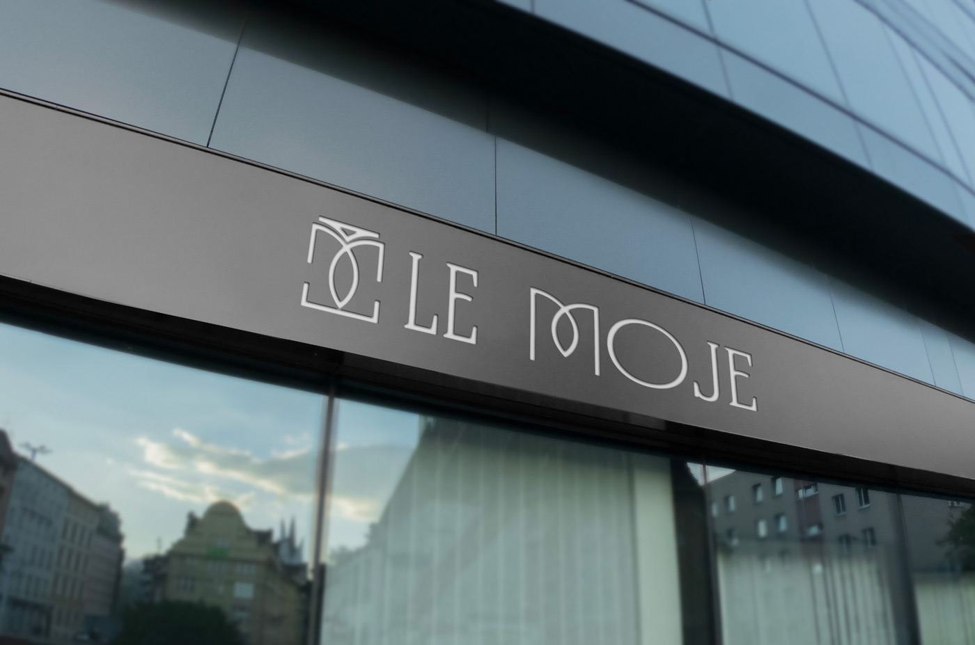 Emphasize modern elegance with a minimalist icon embedded in refined typography, ensuring a sleek and timeless design that resonates with Le Moje’s identity.