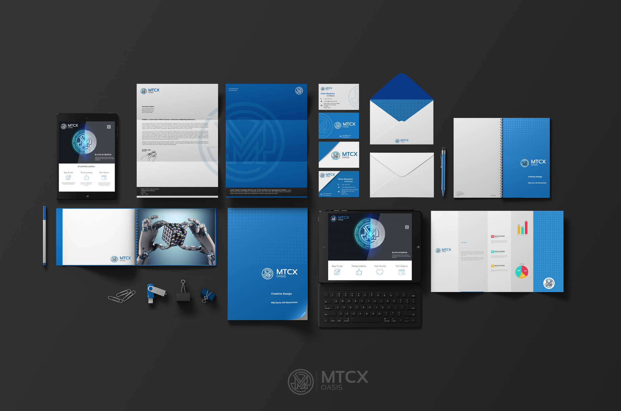 Crafting a full visual identity for MTCX OASIS, featuring a rounded logo with the name "MTCX" to reflect its innovative cryptocurrency vision.